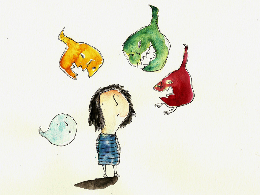 Desde que a simplicidade se deu, Bárbara resenha, desenha, põe gente, passarinhos e medos pra voar no papel: