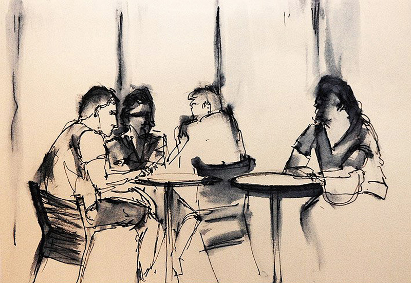Ando cansada de você, fantasmático, de ter você na minha mesa de jantar toda noite. Estou sem voz a gritar que saia. Já não me importo. Já te olho nos olhos de morto, a te imitar no olhar que nunca pretende, que não percebe o arredor, que não olha nem pra fora, nem pra dentro, mas cravou-se em si, como um embrião que se engole pra tentar a vida. Estou machucada de ter você por perto, já não me importo. Desisti de pedir que saia, e agora eu reparto o pão nessa mesa, essa trilha cujo pássaro reteve dentro, cruelmente faminto, esse caminho que retornou até onde não havia mais luz.